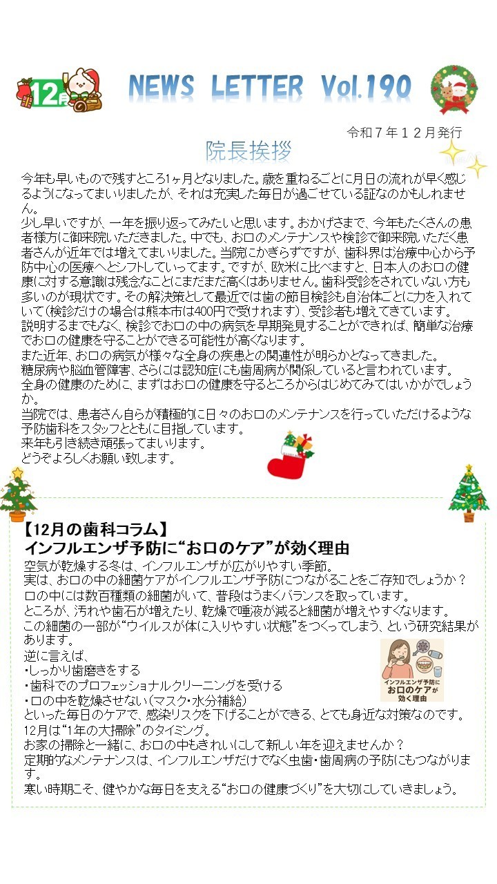 年末の大掃除にちなんでお口のお掃除、定期検診について紹介しております。