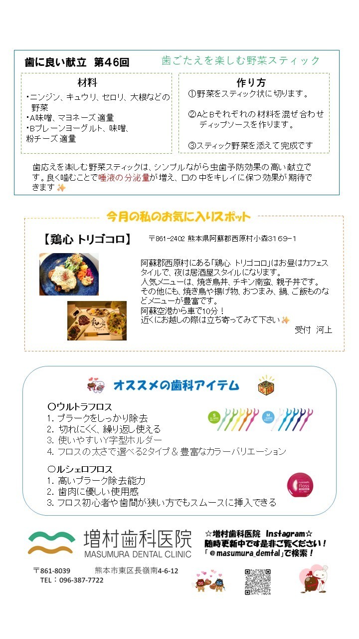歯に良い献立、歯科材料の紹介、院長メッセージなど、様々な情報をお届けしておりますので是非皆様ご覧になってください(^^)/
