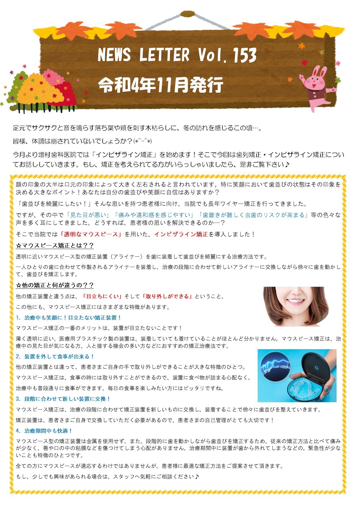 さて、少し早い気も致しますが今年一年を振り返ってみますと、コロナ禍もようやく落ち着き腰を据えて診療に取り組むことができたように思います。特に、昨年から当院で取り組み始めたマウスピース矯正(インビザライン)治療においては、予想以上の反響がありました。