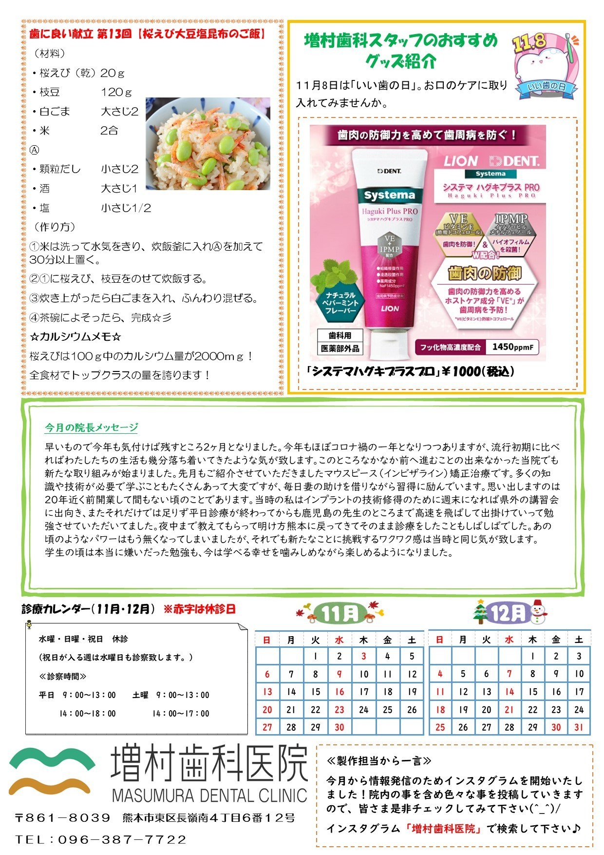 さて、今年も残すところ1か月となりました。今年は産休育休のスタッフが2名いたため、なにかと慌ただしい1年だったように思います。そんな中、今いるスタッフ達がその穴を埋めるべく頑張ってくれ、さらには新たに4名の新人さんを迎え入れることができました。みんな協力し合って、医院を支えてくれたことに本当に感謝しています。来年以降のみんなの成長が楽しみです。